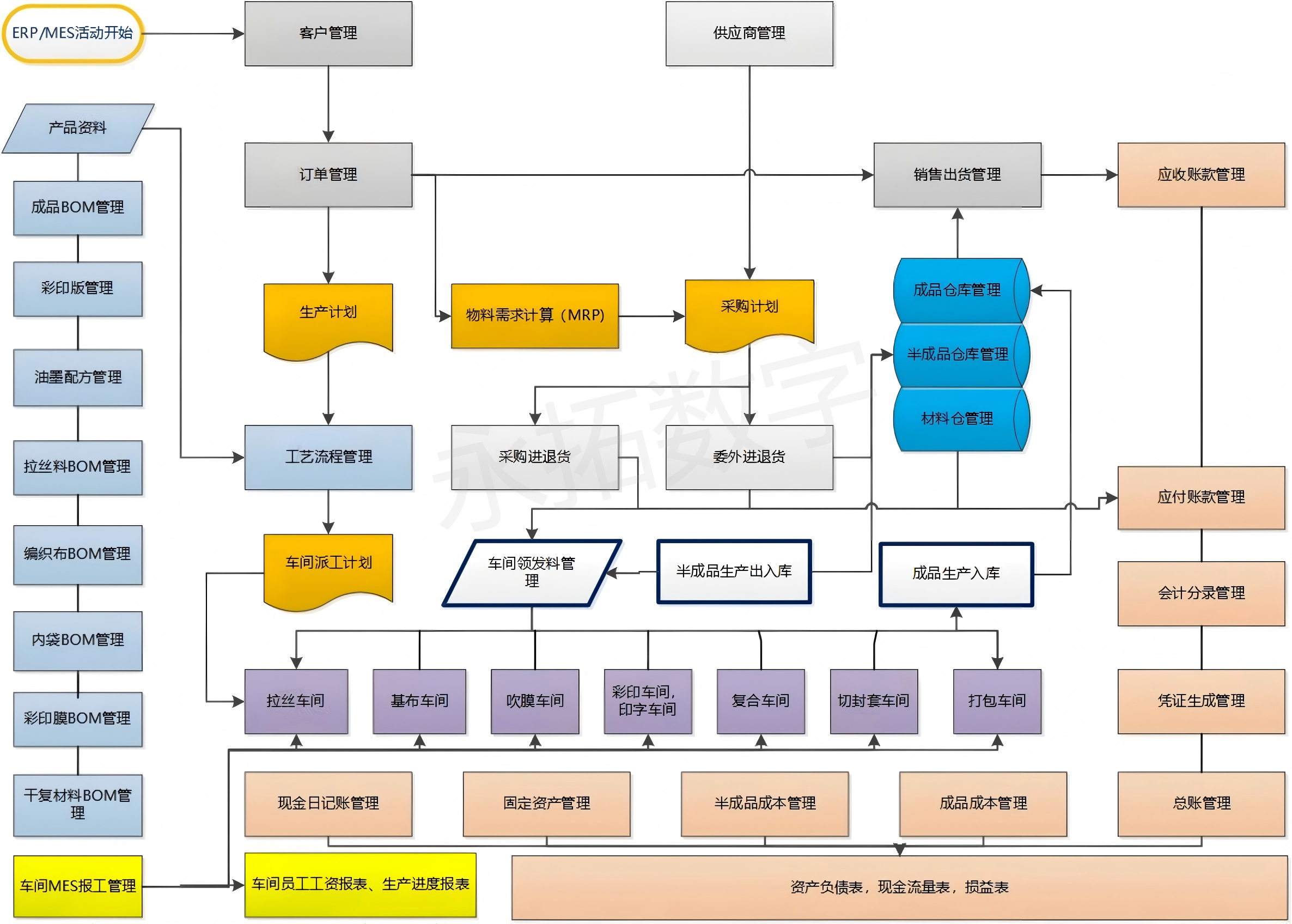 提供完善的系统平台管理各项资源覆盖塑料编织行业企业 生产、销售、采购、财务等模块帮助企业建立标准化 管理体系,降低管理成本,提升生产效率。